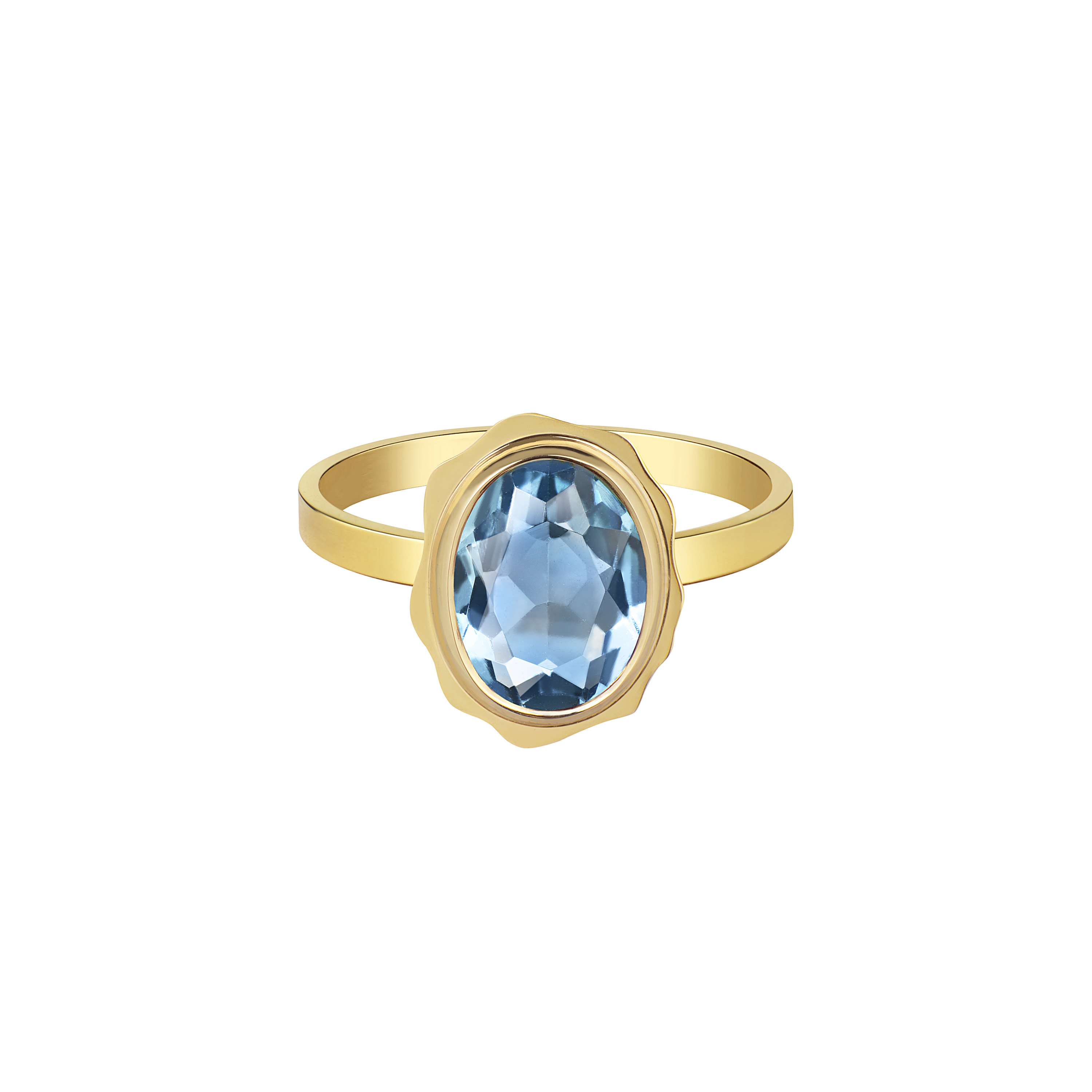 желтое золото 585, граненый голубой топаз 10х8 мм.