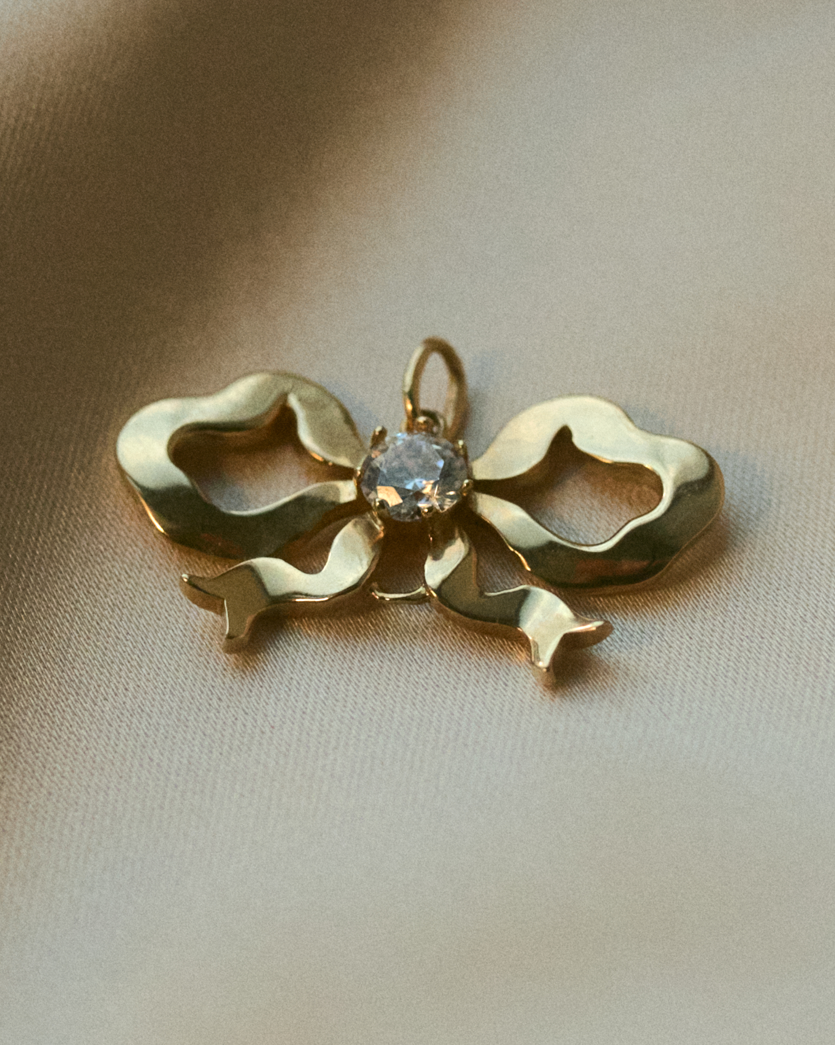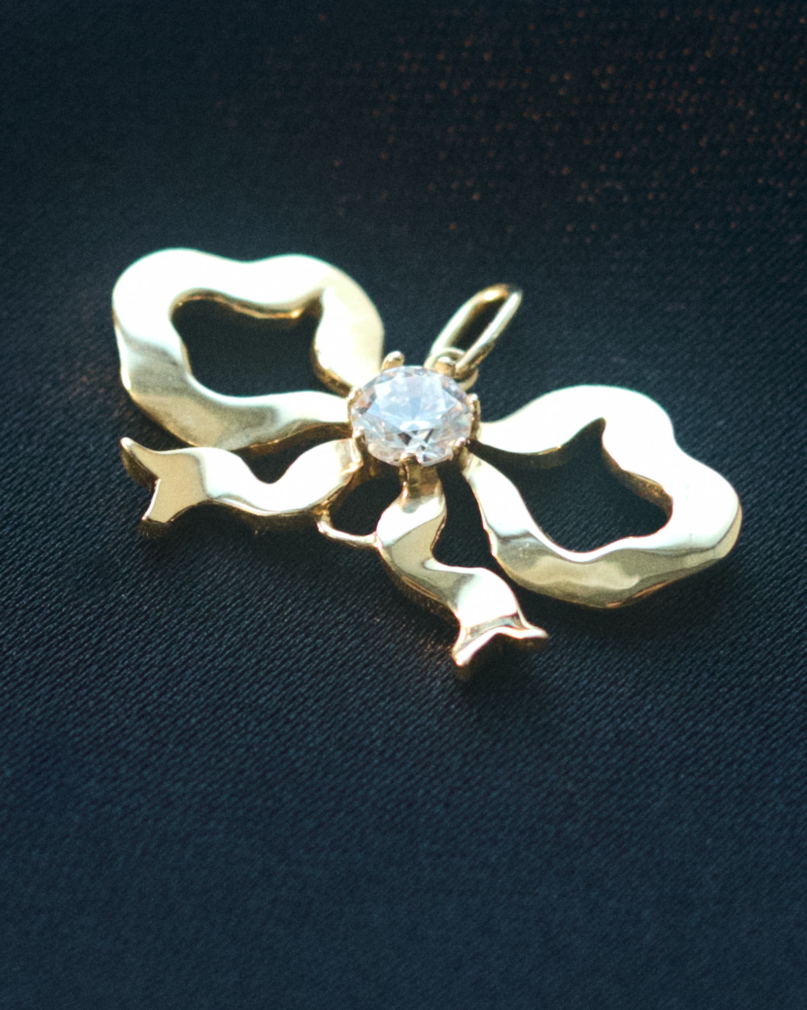 желтое золото 585, вставка фианит 0,25 карат, размер 4,3 мм, форма круг, бесцветный, подвеска находится в шкатулке из оникса, упакованной по японскому методу фуросики в платок из хлопка.