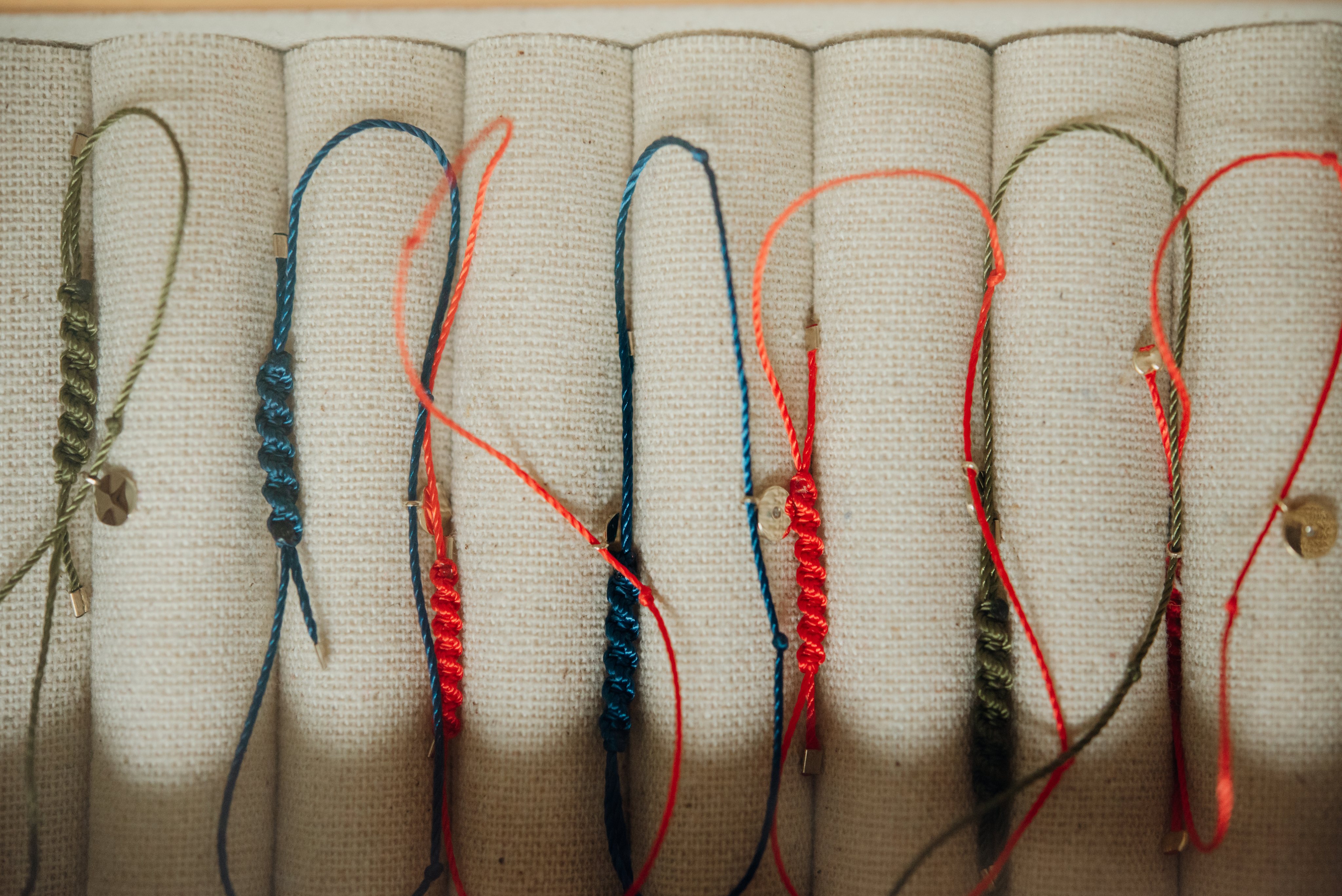 браслет регулируемой длины из золота 585 и прочной нити находится в хлопковом конверте (идеальном для хранения украшения в дороге) внутри фирменного мешочка.
