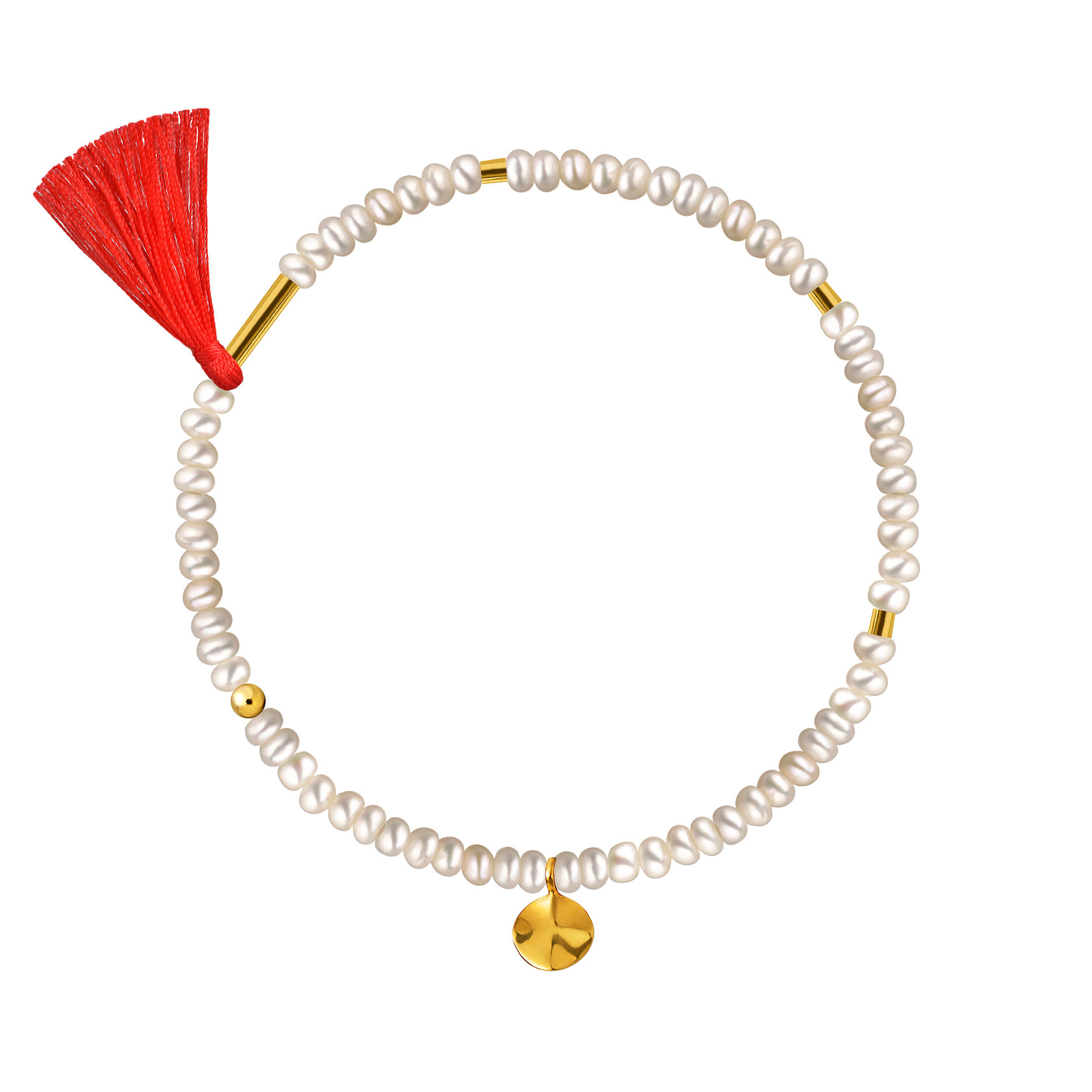 браслет из белого жемчуга с красной кистью