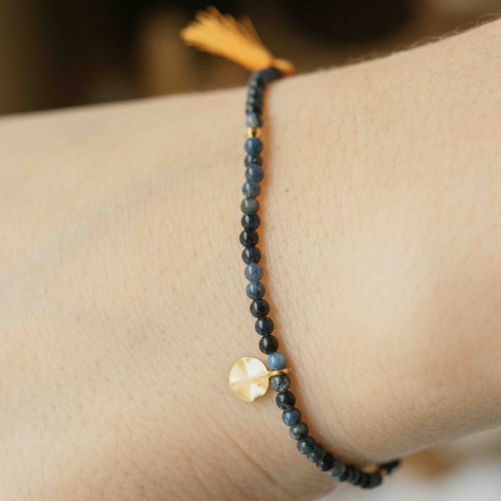 браслет из синего агата с тыквенной кистью