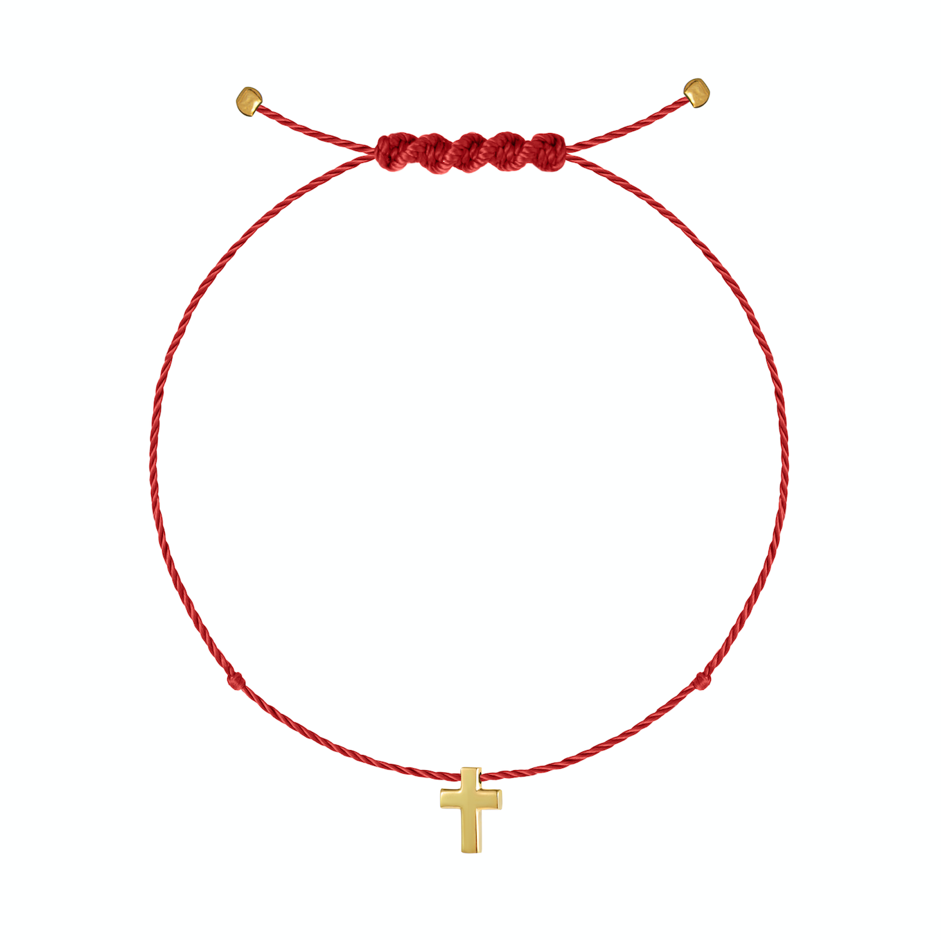 браслет регулируемой длины из золотого крестика 585 пробы и прочной нити находится в хлопковом конверте (идеальном для хранения украшения в дороге) внутри фирменной коробочки.