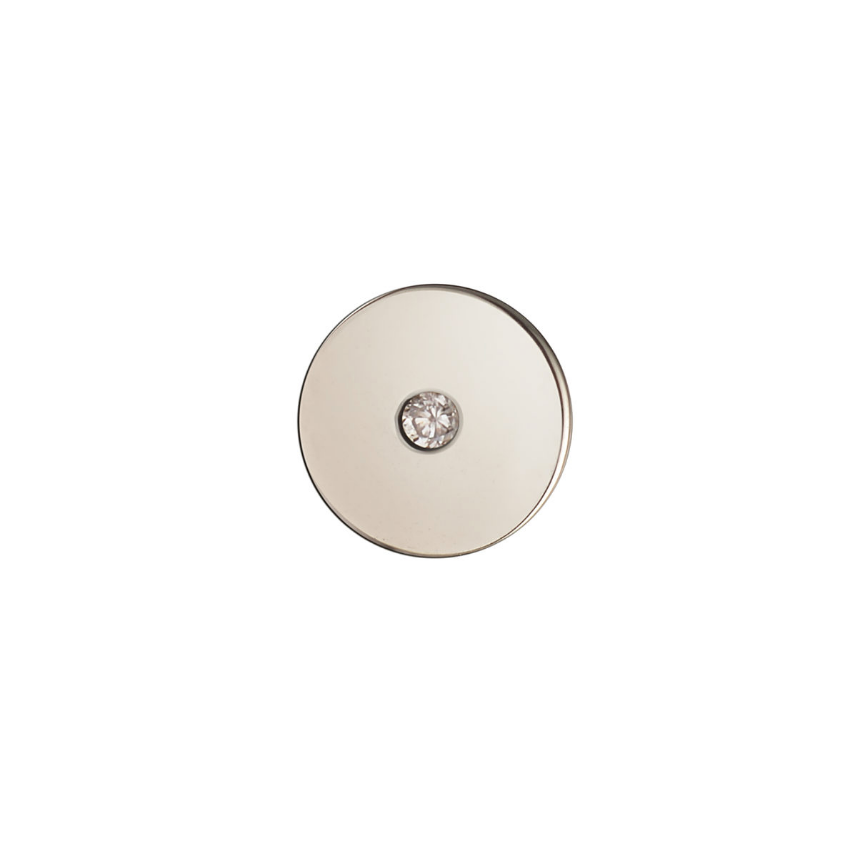 серьга из белого золота 585 с бриллиантом прочно сидят на ухе благодаря застежке на резьбе, закруглённые края замка