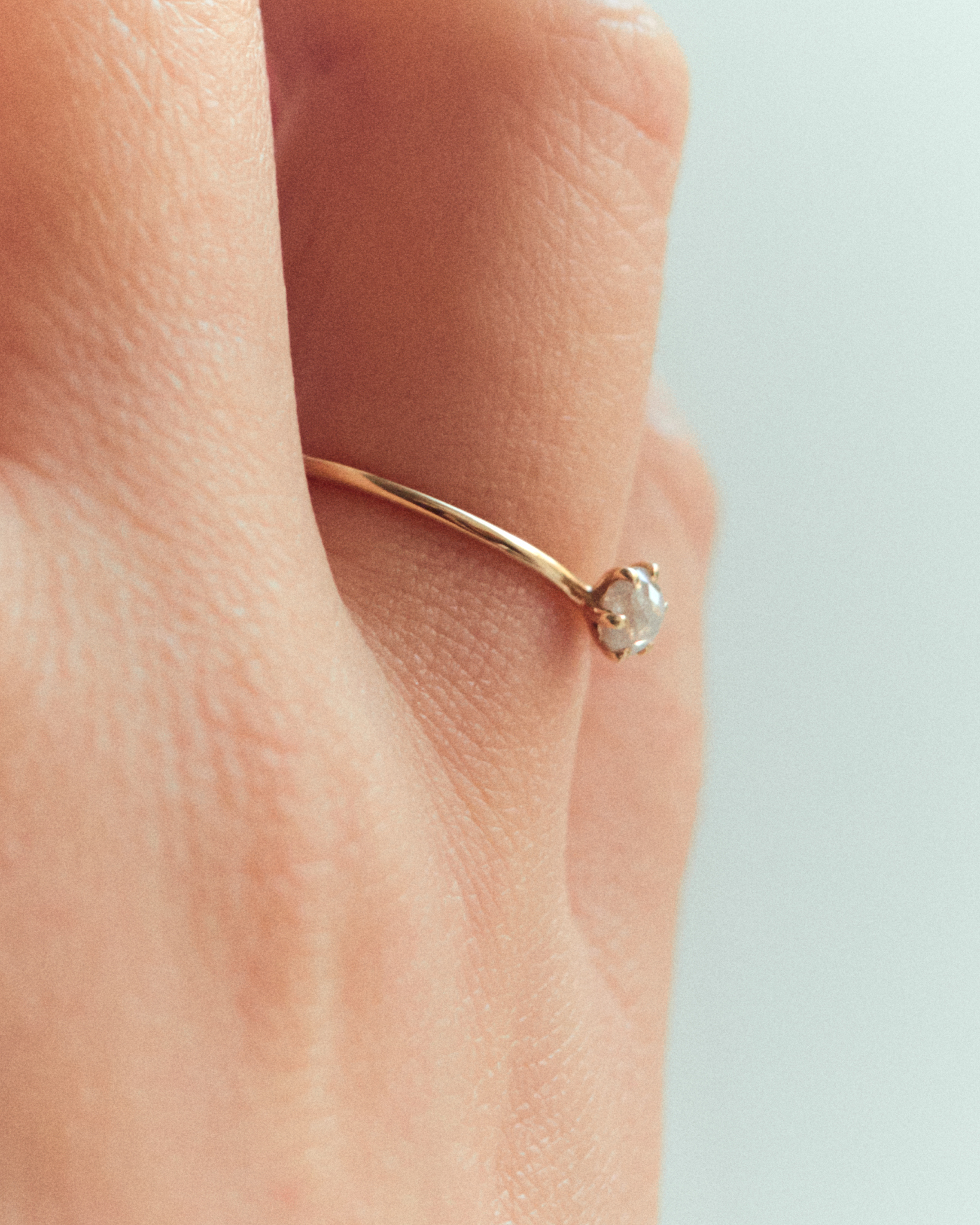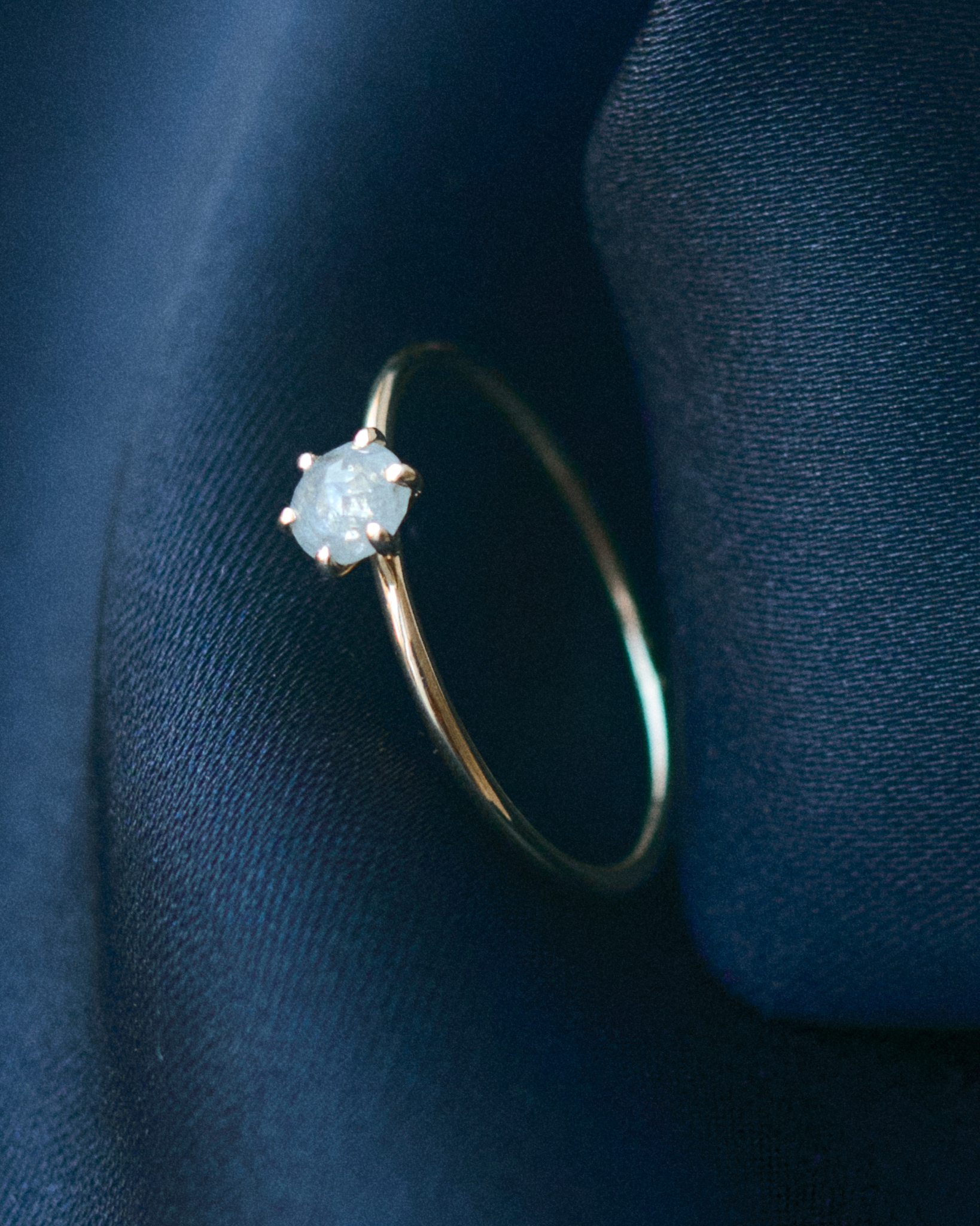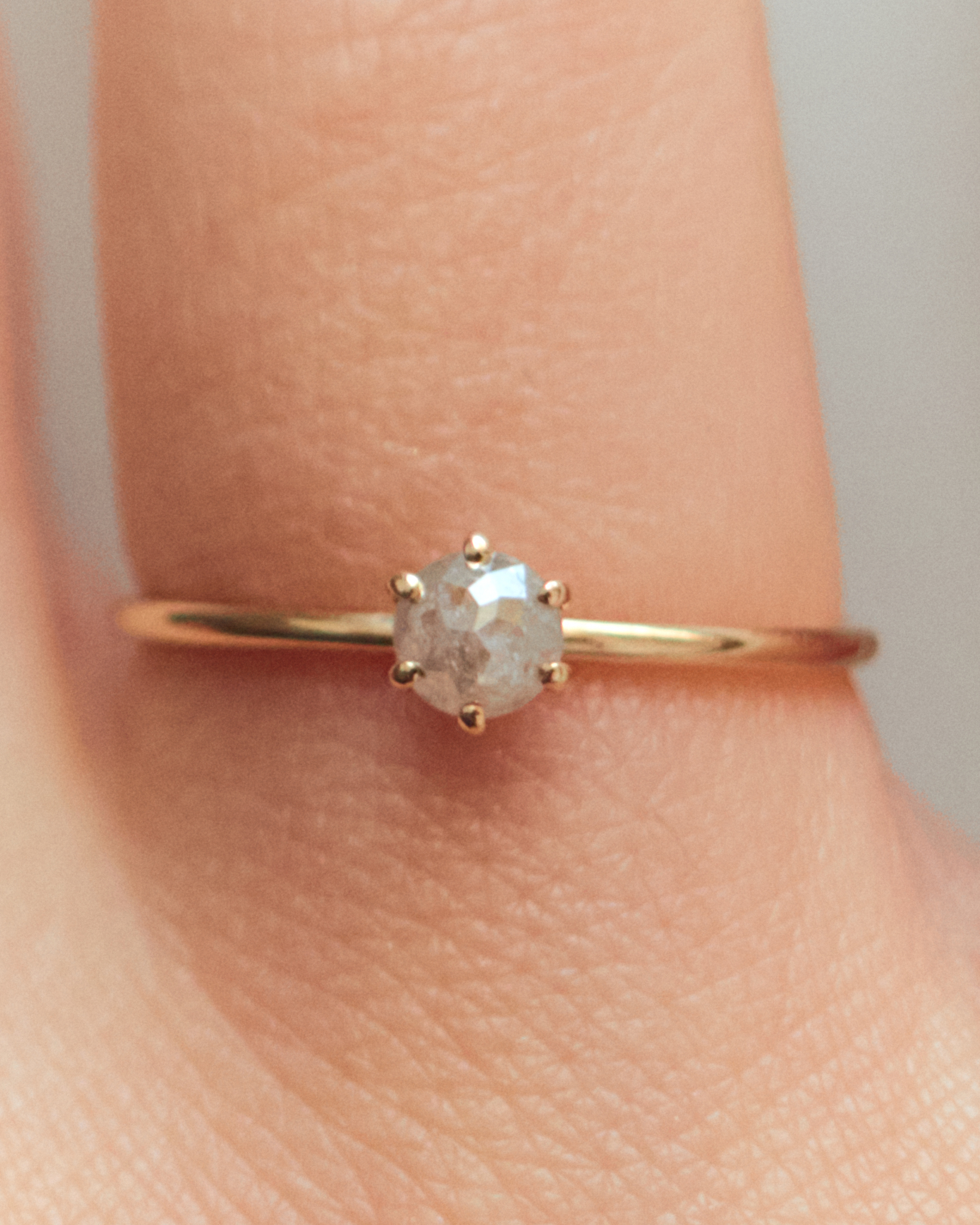 желтое золото 585, бриллиант винтажной огранки «роза» дымчатого серо-серебристого оттенка с шестью крапанами