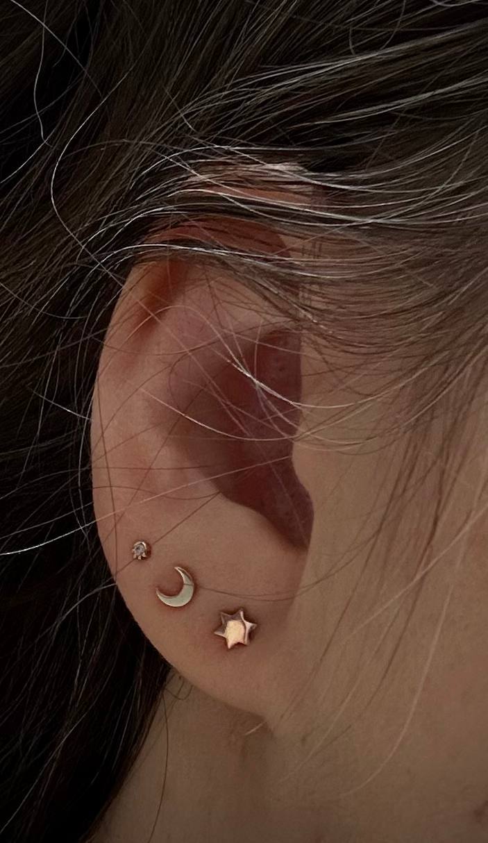серьга из жёлтого золота 585 с бриллиантом прочно сидят на ухе благодаря застежке на резьбе, закруглённые края замка позволяют чувствовать себя комфортно не снимая украшение на ночь.