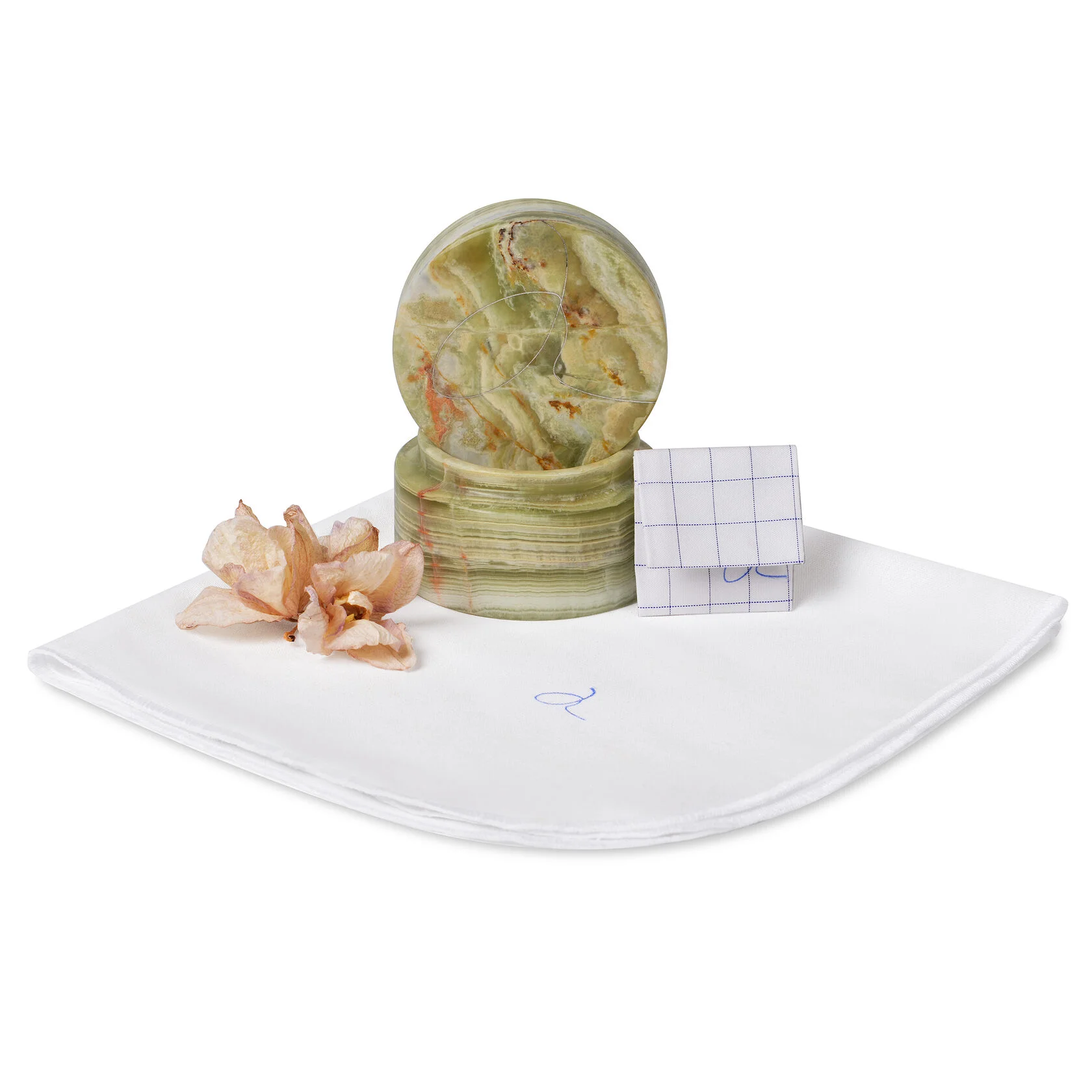 кольцо из желтого золота 585 находится в шкатулке из оникса, упакованной по японскому методу фуросики в платок из хлопка.