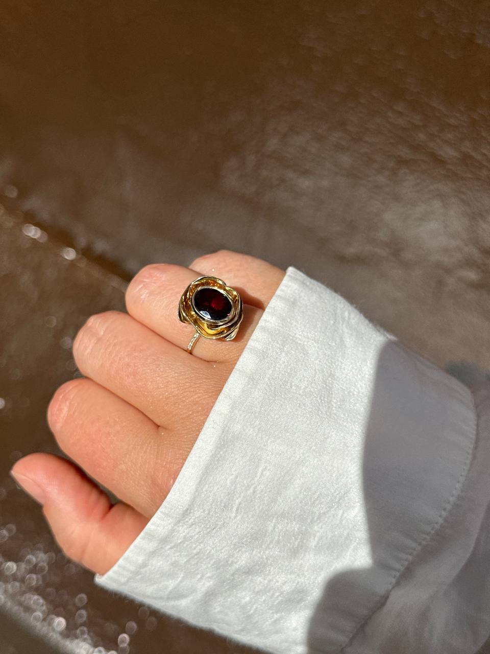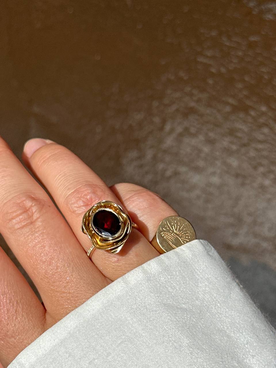 роскошное и уникальное — кольцо «Роза» с гранатом