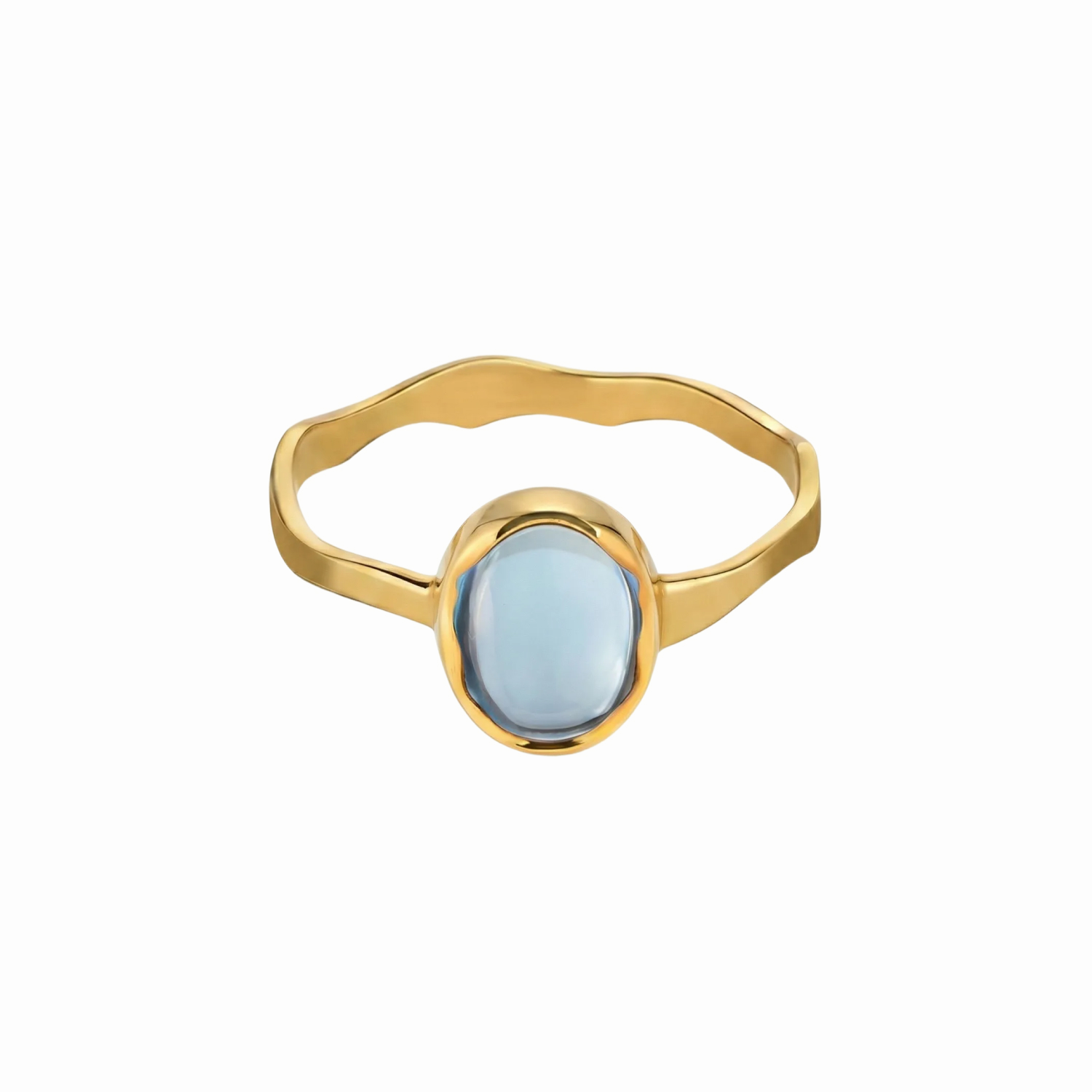 желтое золото 585, голубой топаз, кольцо находится в шкатулке из оникса, упакованной по японскому методу фуросики в платок из хлопка