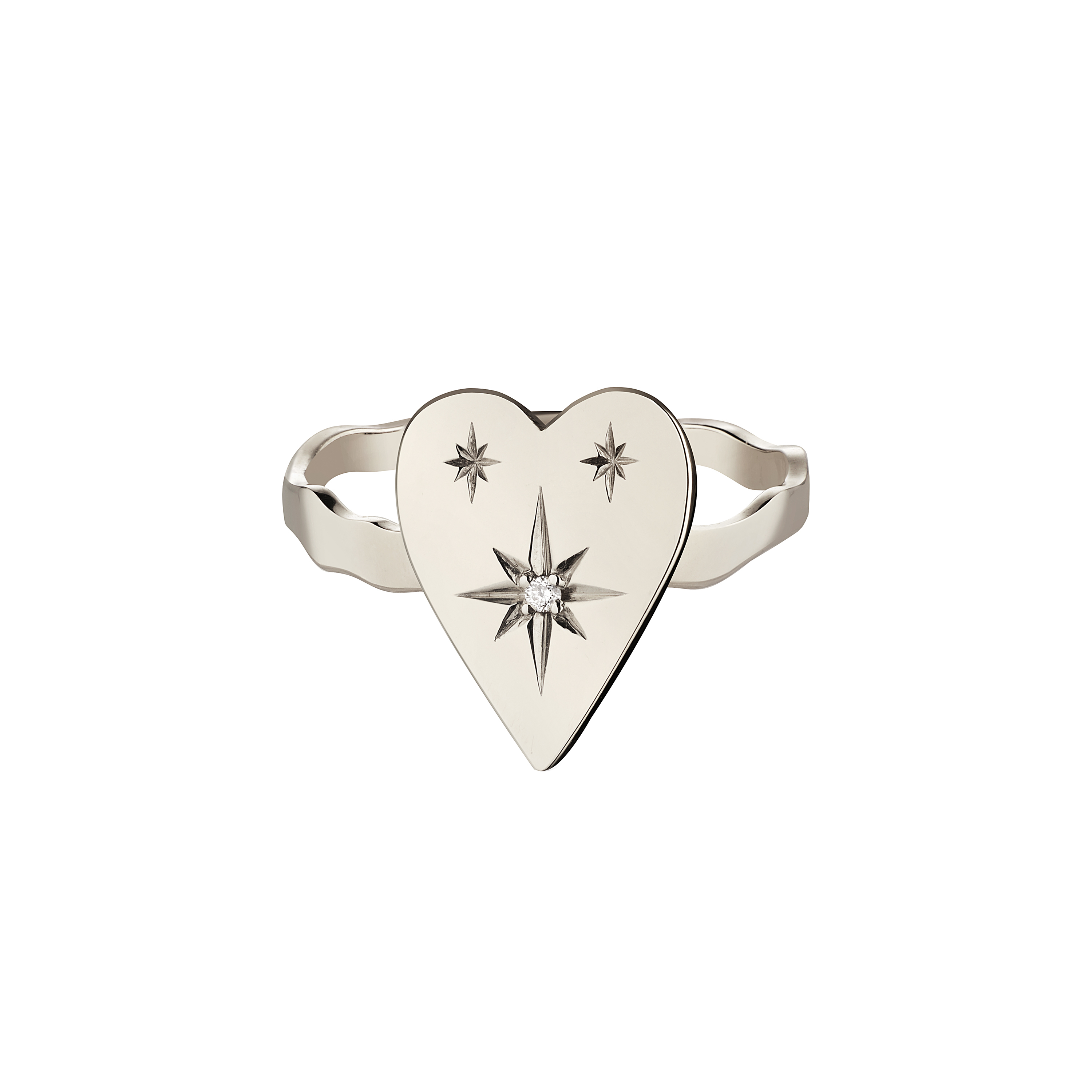 кольцо сердце «творение» со звездой и бриллиантом из белого золота