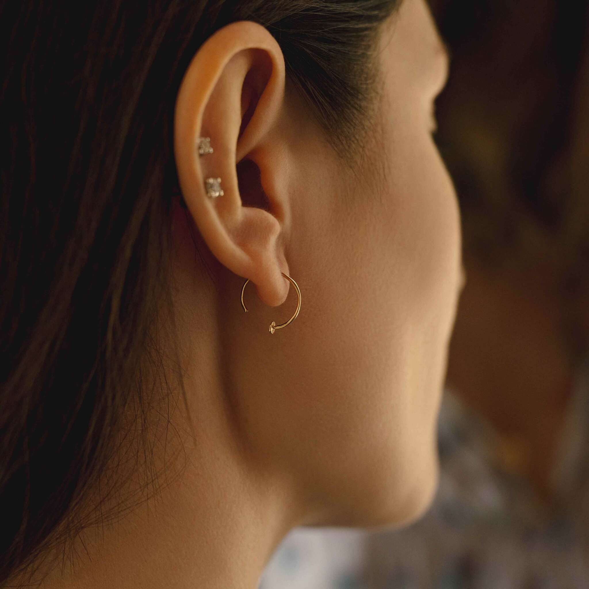 серьги из белого золота 585 находятся в шкатулке из оникса, упакованной по японскому методу фуросики в платок из хлопка.