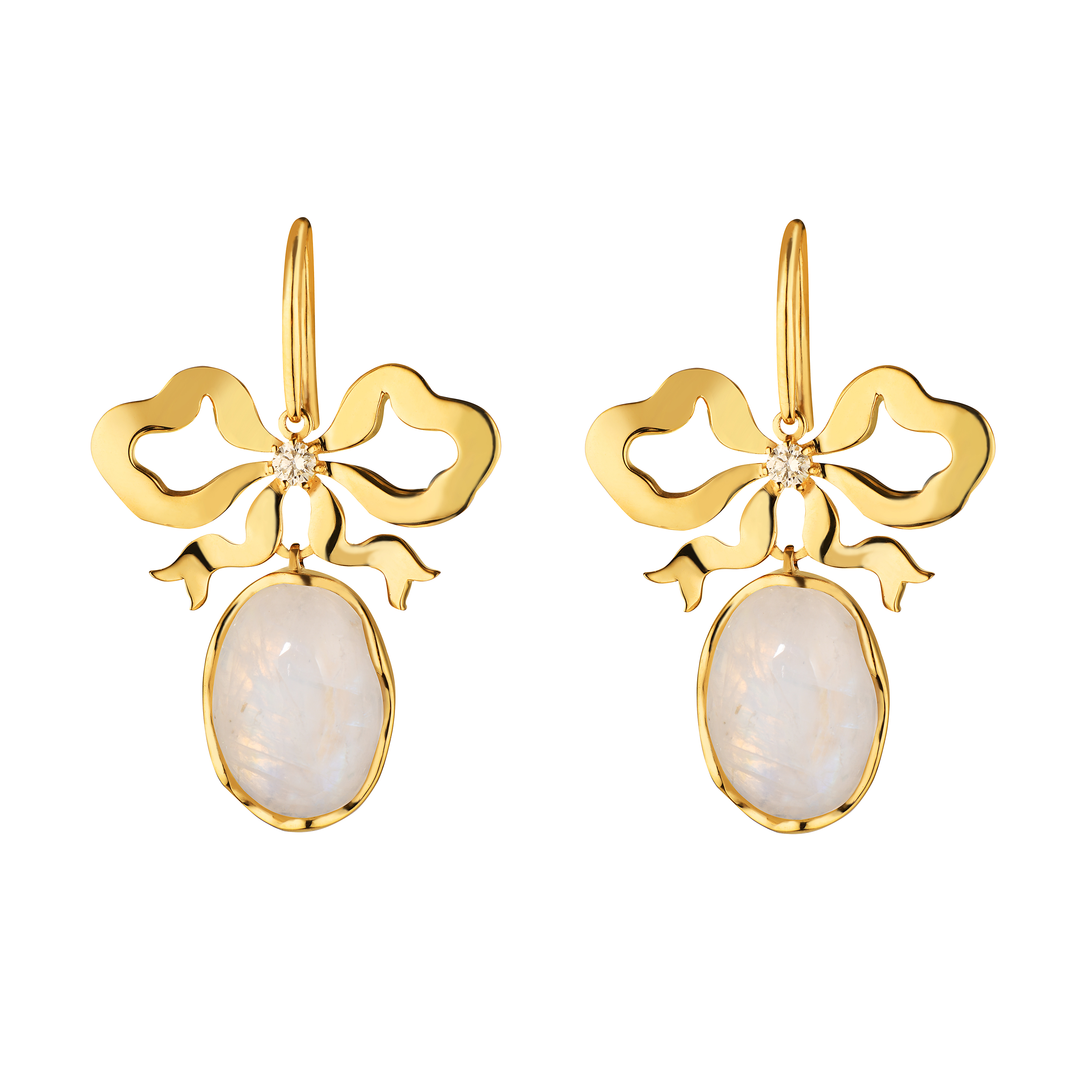 серьги банты с лунным камнем и бриллиантами